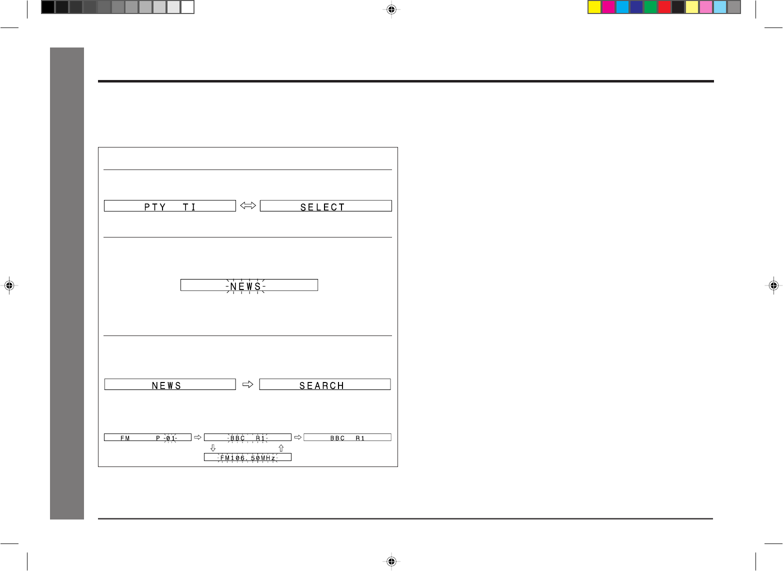 To specify programmed types and select stations (PTY search):