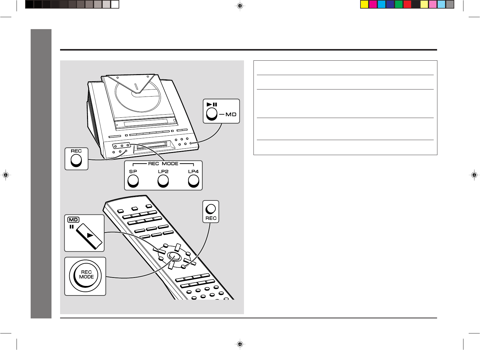 des touches REC MODE (SP, LP2, LP4).