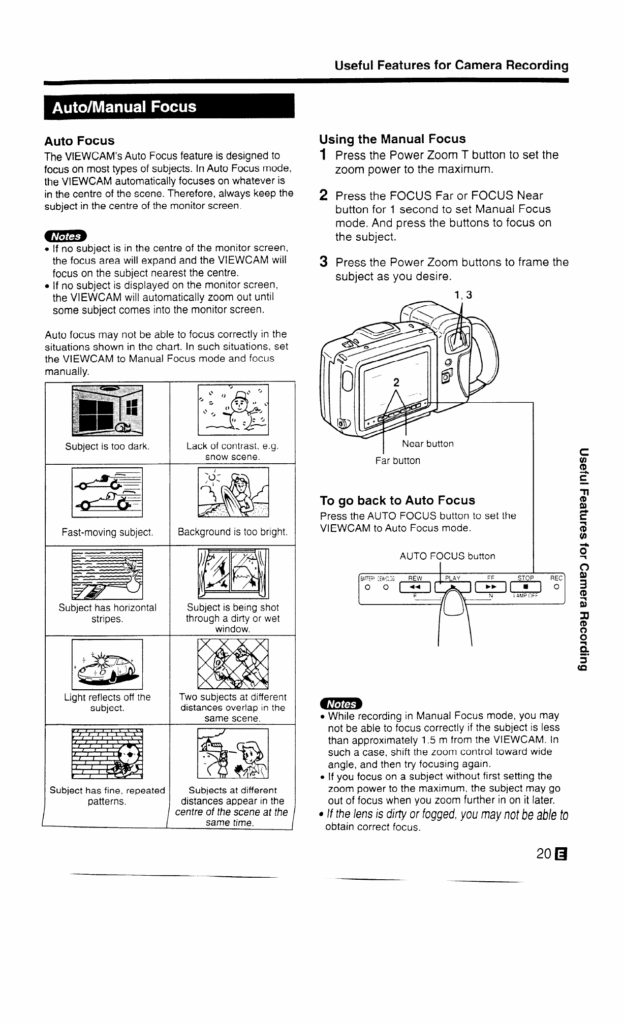VIEWCAM to Auto Focus mode.