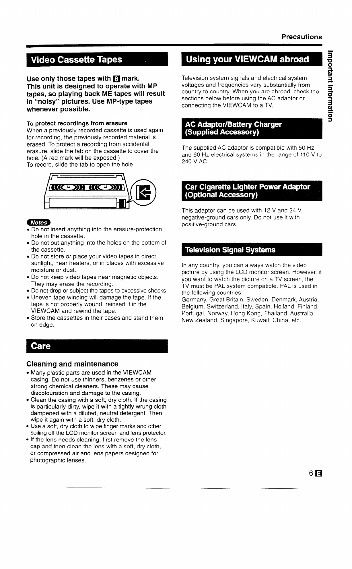 l Many plastic parts are used in the VIEWCAM