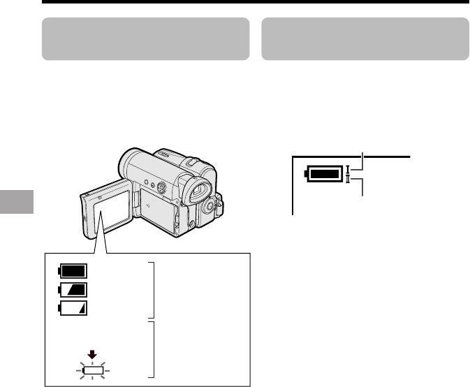 • The remaining battery power indicator may