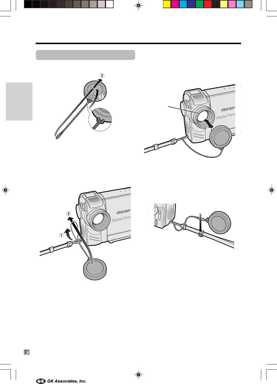 Attach the strap to the lens cap as shown