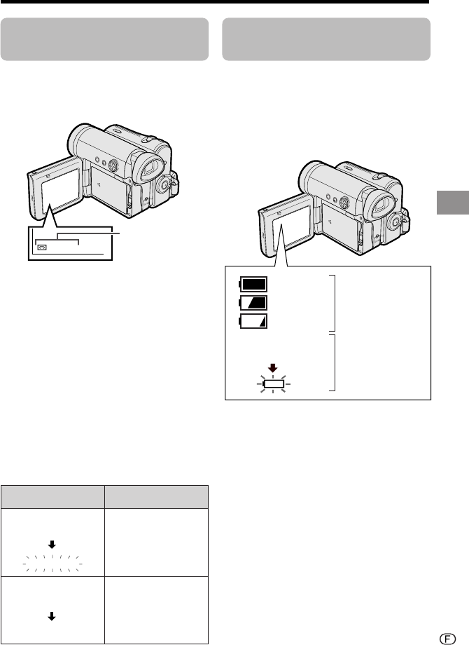 batterie est affichée lorsque le caméscope