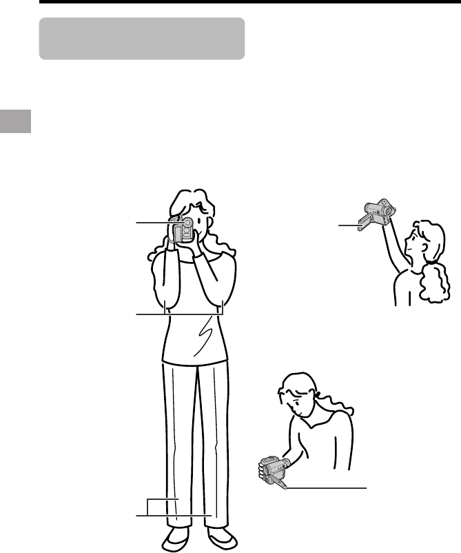 Put your right hand through the hand strap, and place your left hand under the camcorder