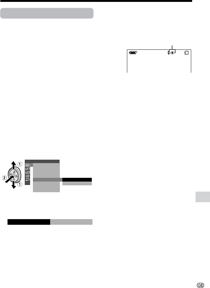5 Press l or m to select “RED EYE”,