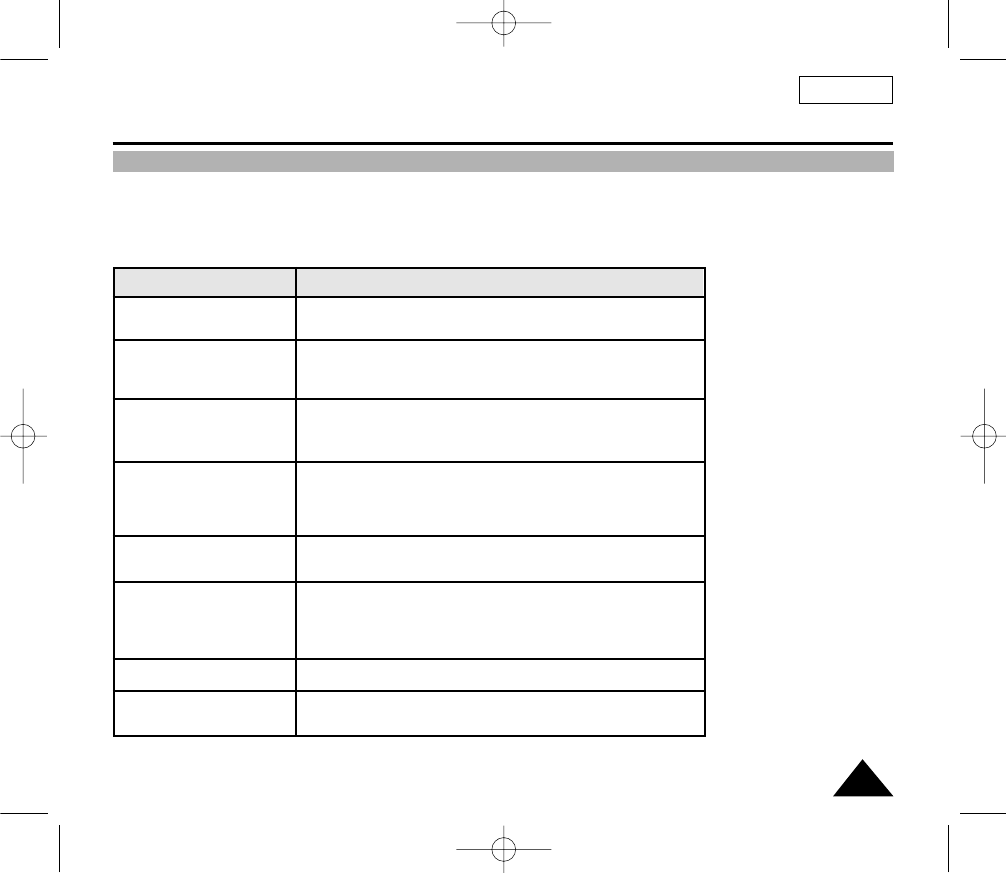 ✤ If you run into any problem using the camcorder, use the following table to troubleshoot the problem.