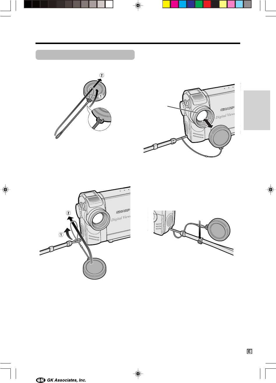 Attach the strap to the lens cap as shown