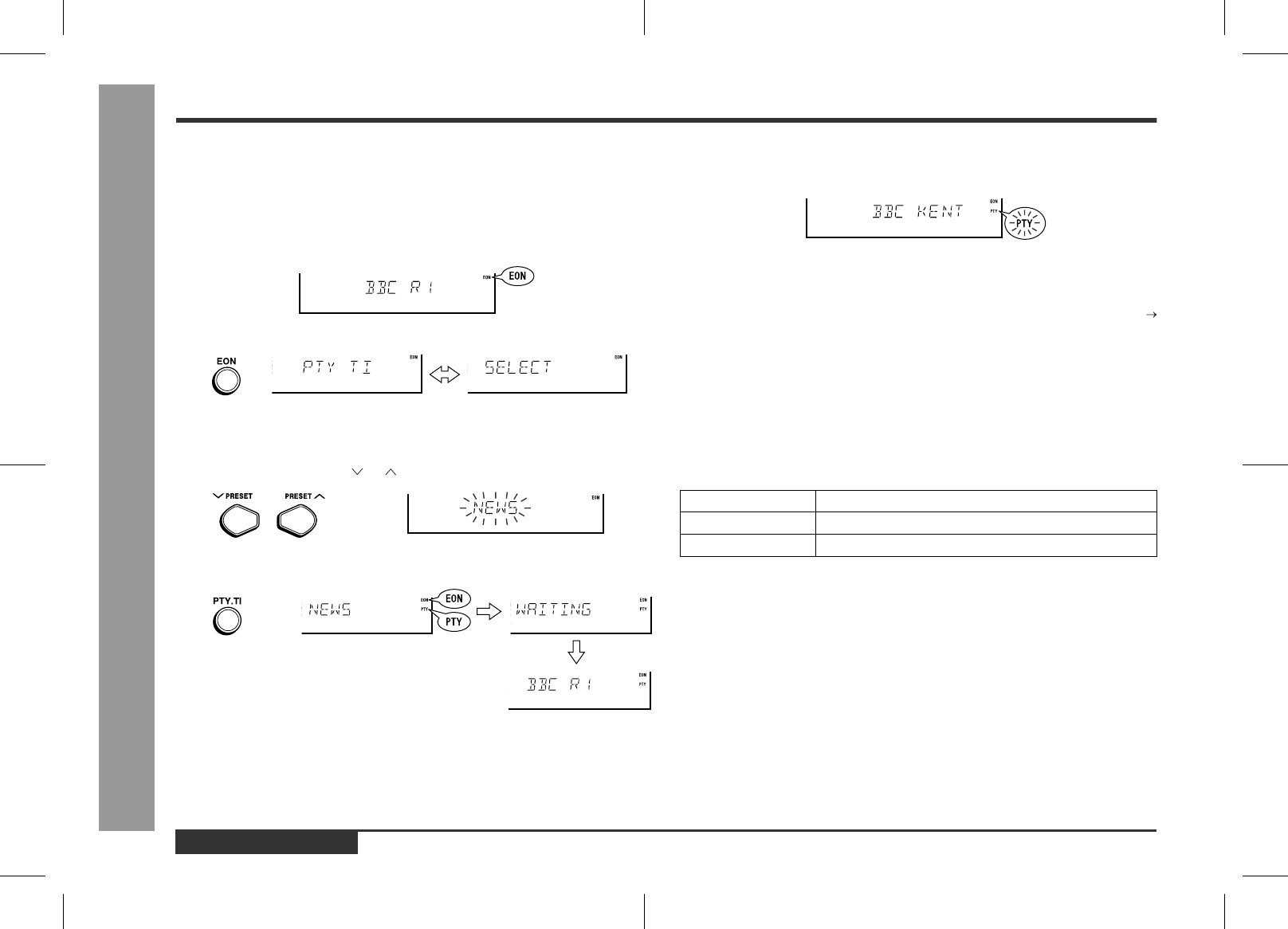 "PTY" will appear, and the unit will enter the EON-PTY stand-by mode.