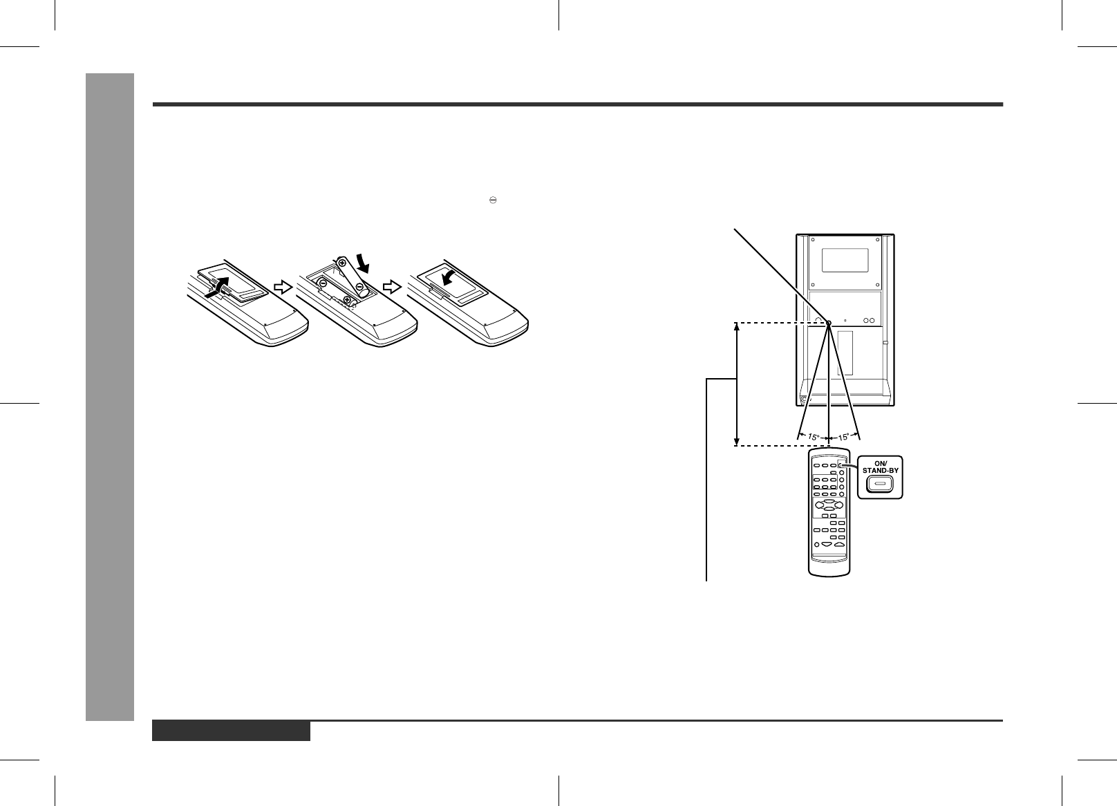 The remote control can be used within the range shown below: