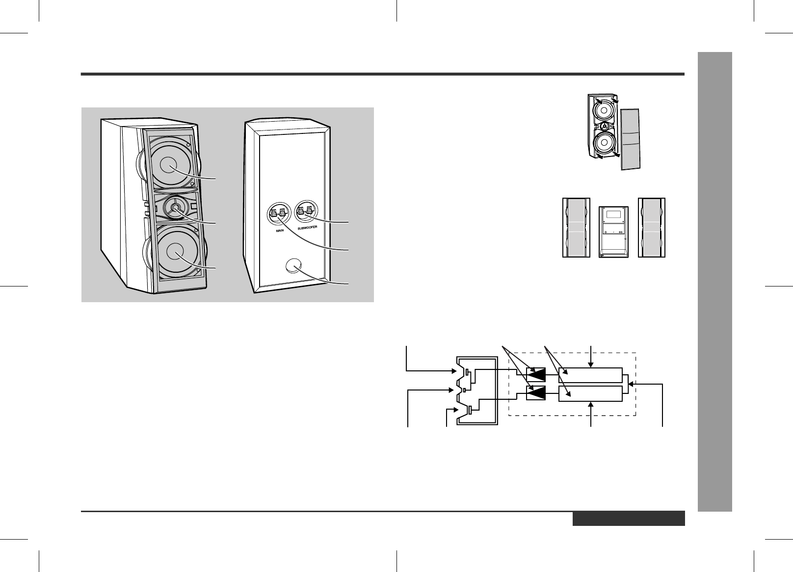 Each speaker unit has a built-in subwoofer (low frequency range) which is driven sep-