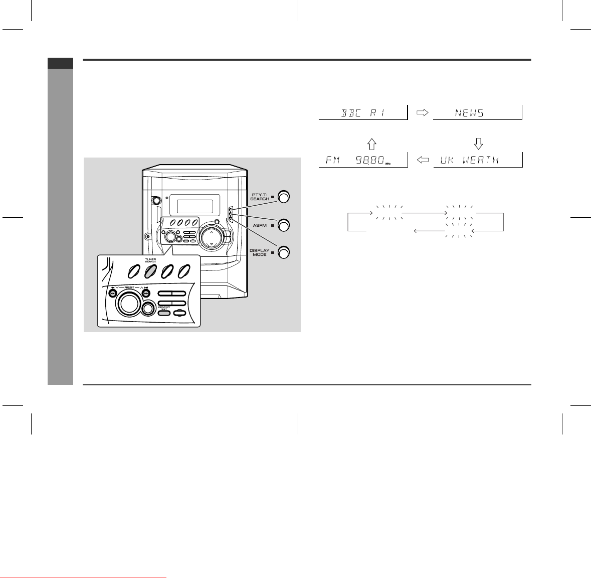 ! "NO PS", "NO PTY" or "NO RT" will flash for about 5 seconds, and then the fre-