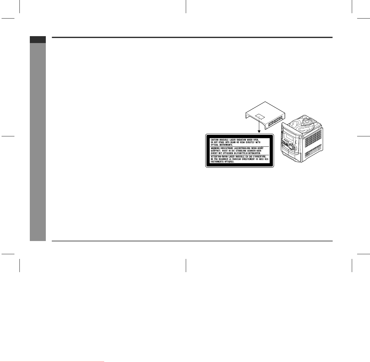 As the laser beam used in this compact disc player is harmful to the eyes, do not