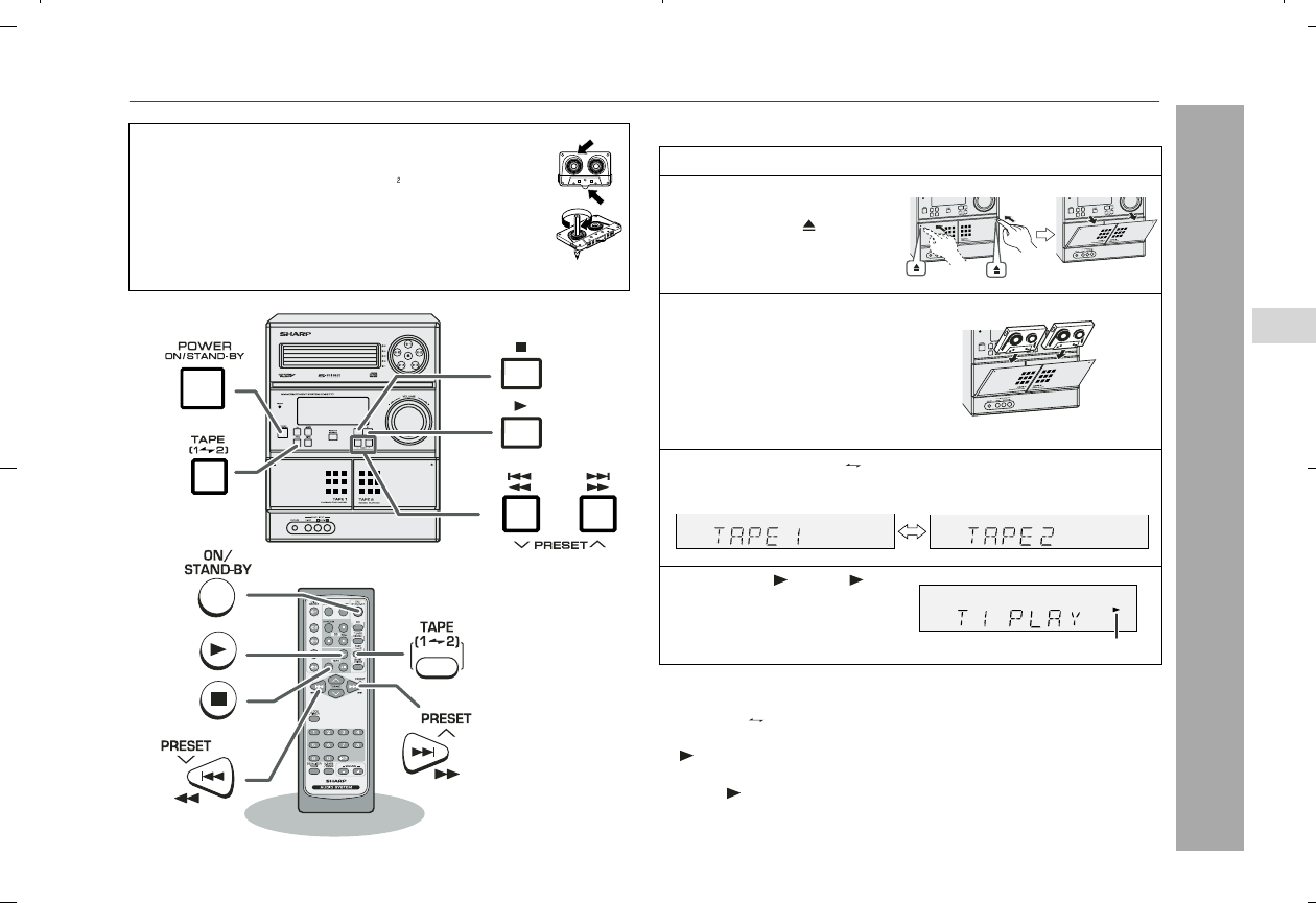 Listening to a cassette tape (TAPE 1 or TAPE 2)