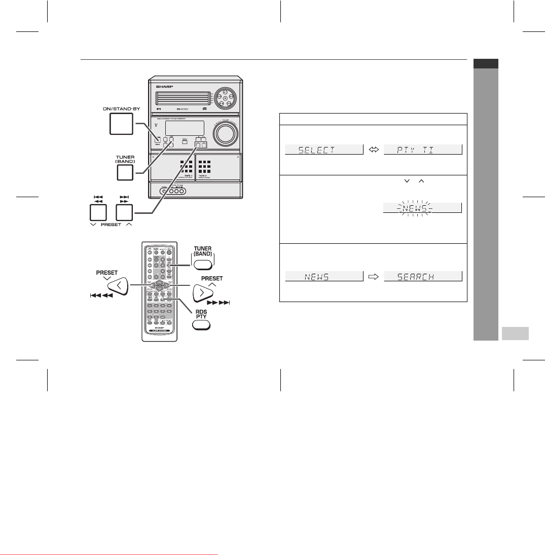 "SELECT" and "PTY TI" will appear alternately for about 6 sec-