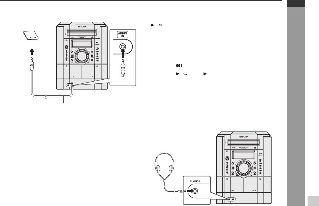 1 Connect a portable audio player, etc. to the front AUDIO IN