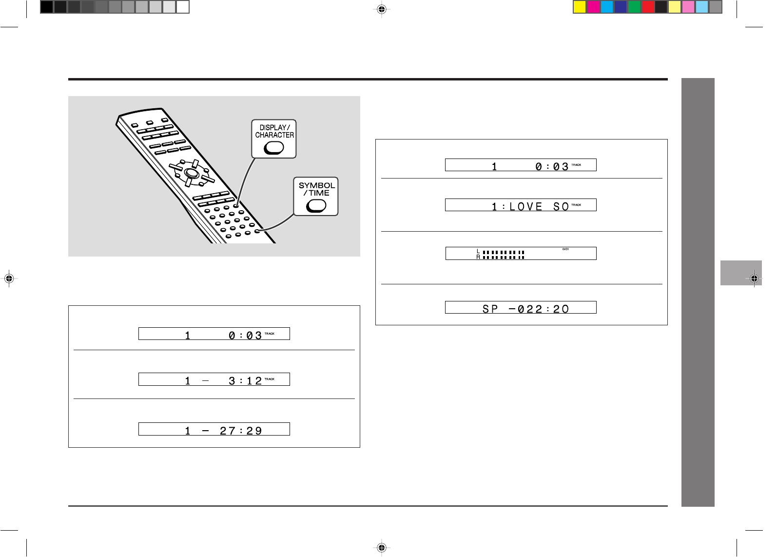Each time the SYMBOL/TIME button on the remote control is pressed during play-
