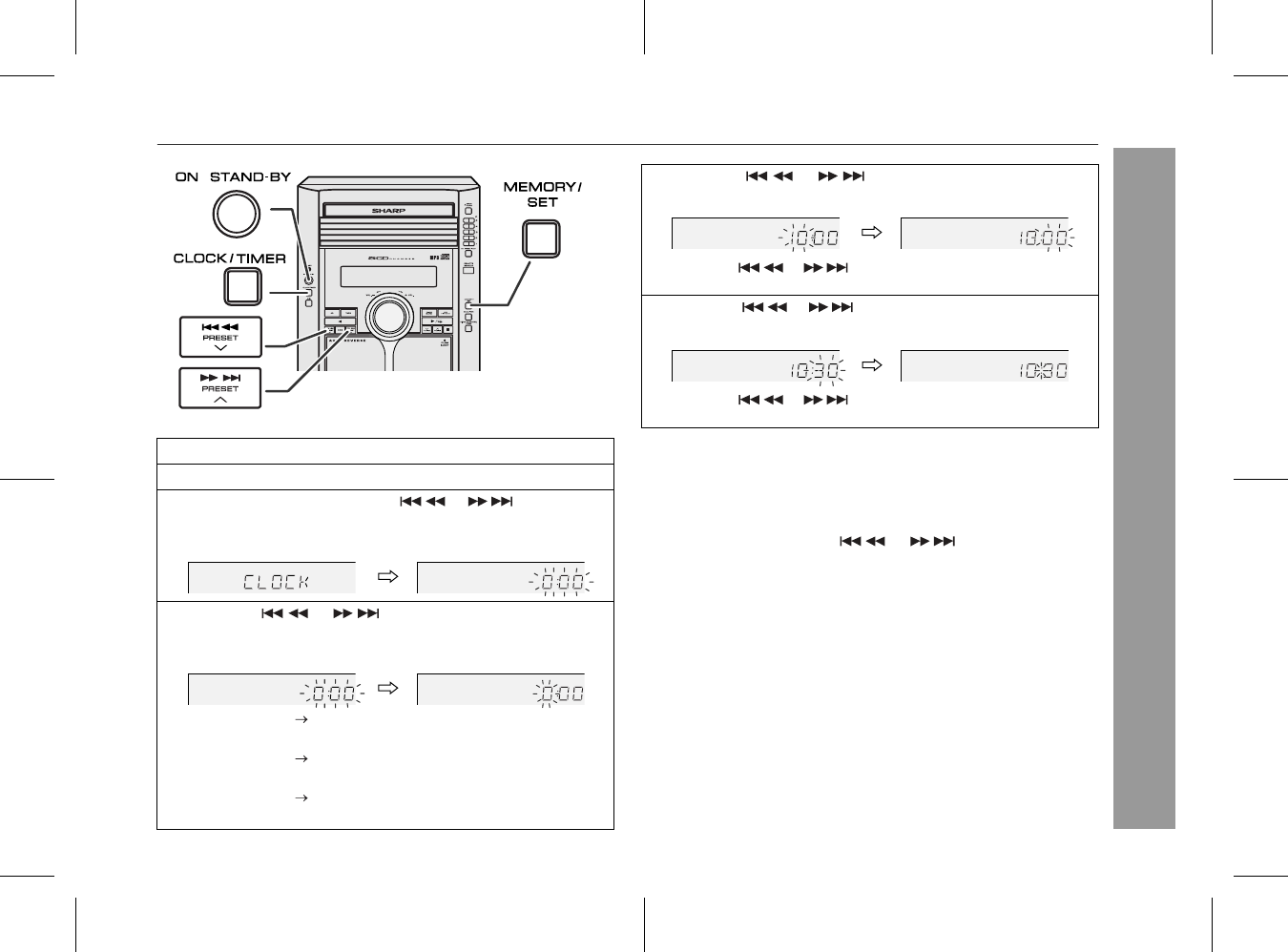 lect "CLOCK", and press the MEMORY/SET (MEMORY)