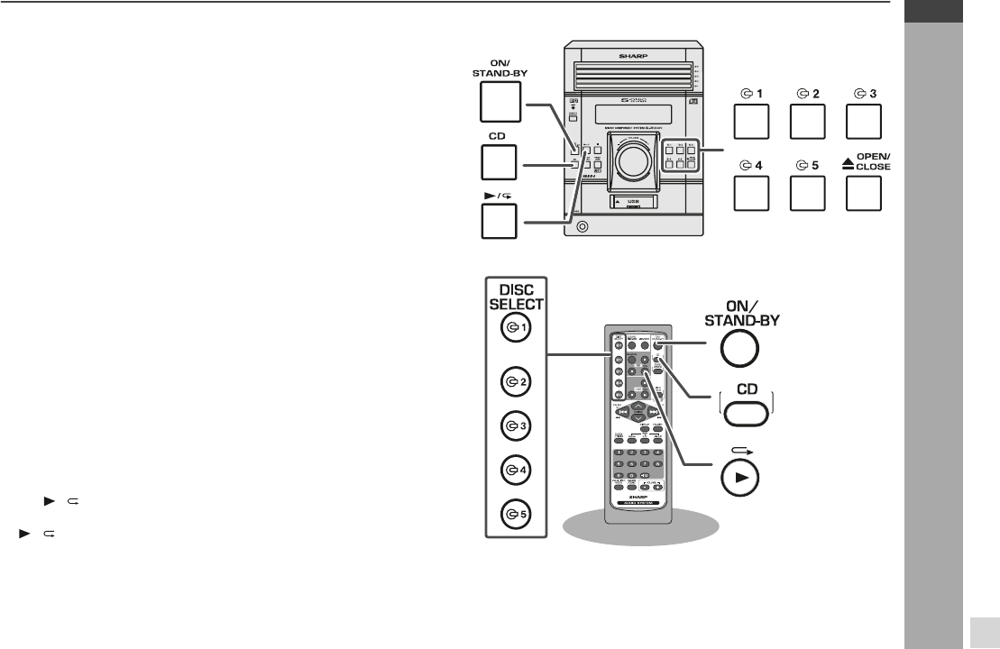 CD button (main unit and remote control): The unit turns on and