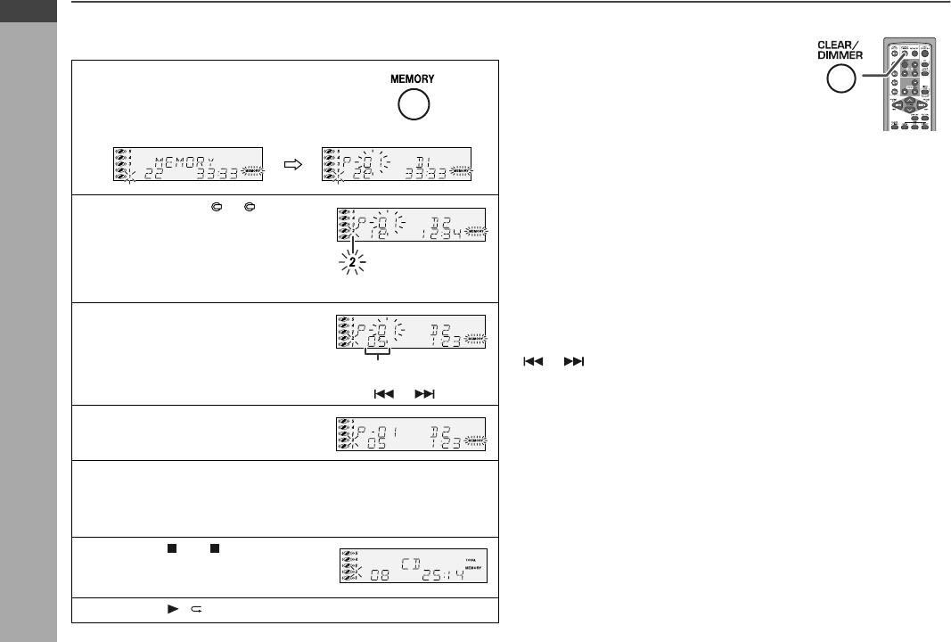 CLEAR/DIMMER button on the remote control. The “MEMORY” in-
