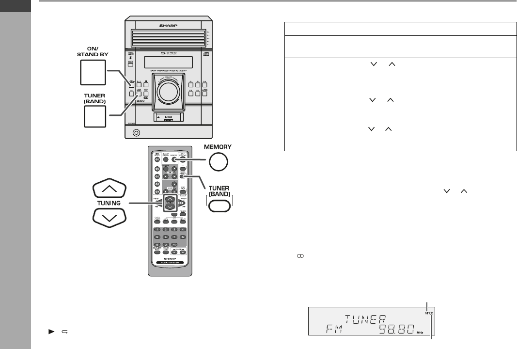 Press the TUNER (BAND) button to display the “ST” indicator.
