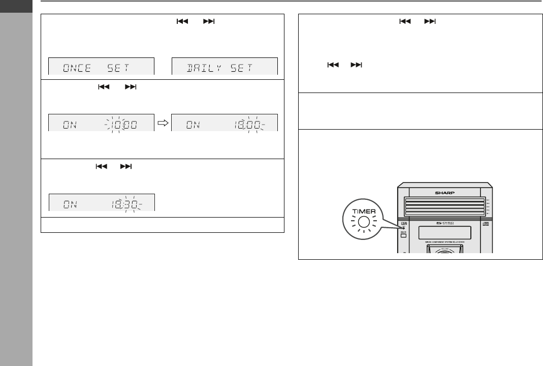 The illustrations show the timer playback setting in the daily tim-