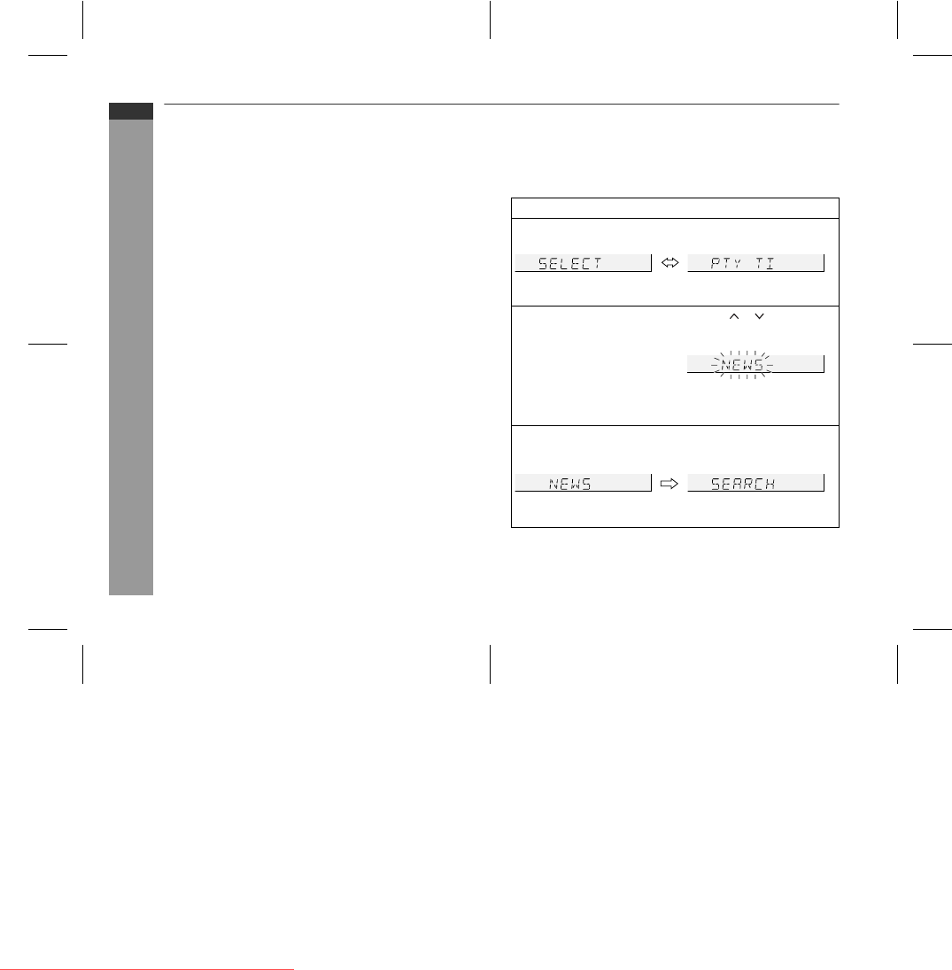To specify programmed types and select stations (PTY search):