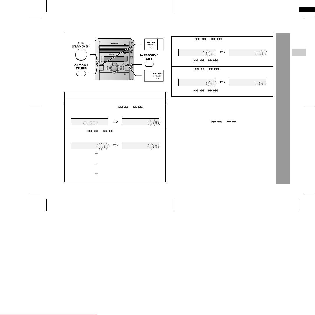 Perform "Setting the clock" from step 1. If the "CLOCK" does not