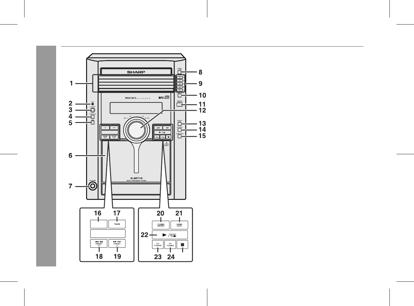 20. Tuner (Band) Button . . . . . . . . . . . . . . . . . . . . . . . . . . . . . . 21