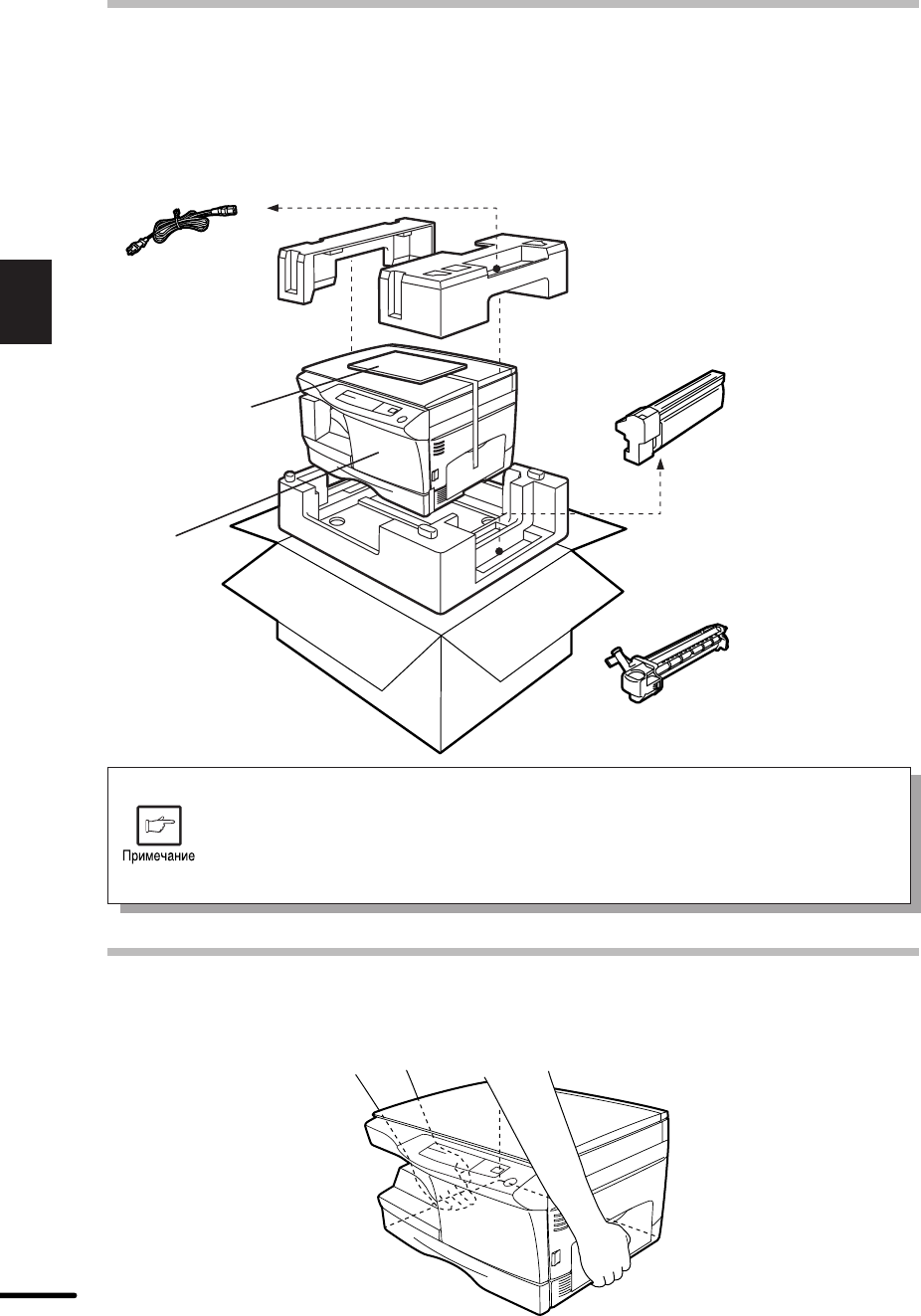 распаковки копировального аппарата и переноски его на место установки.