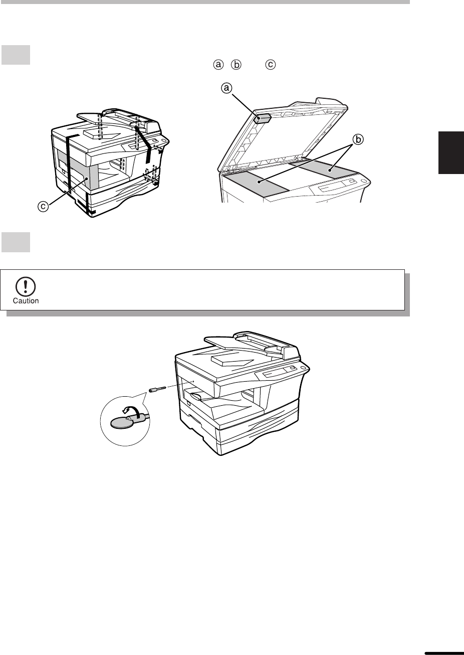 Store the screw in the paper tray because it will be used if the copier has to be
