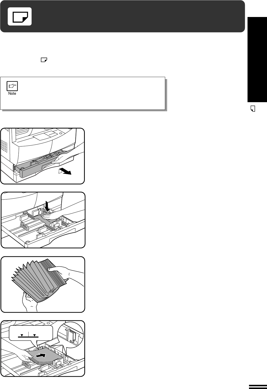 Fan the copy paper and insert it into the tray. Make sure