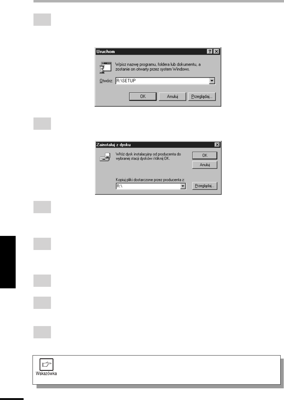 wpisz R:\SETUP (o ile litera R odpowiada napêdowi CD-ROM z p³yt¹ ze sterownikiem),