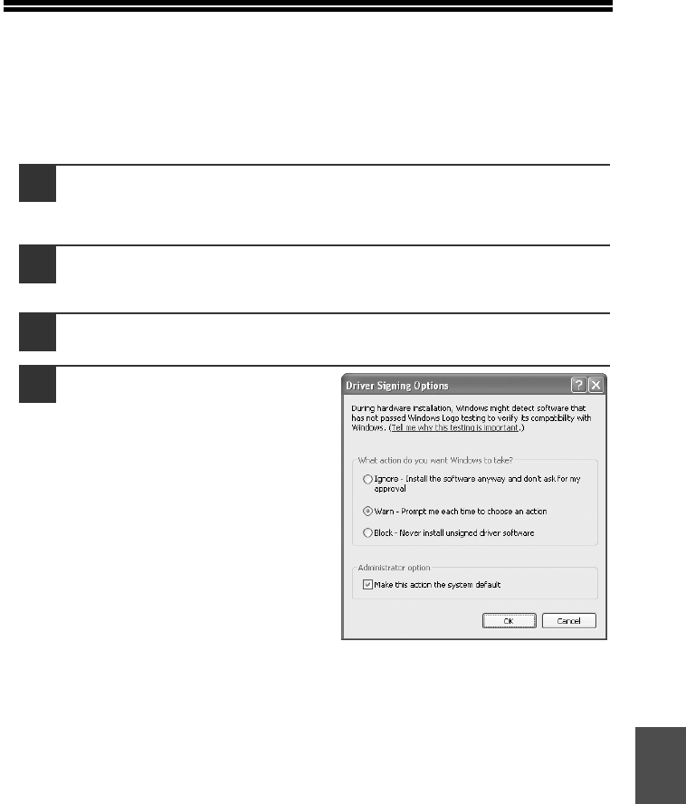 Click the "Hardware" tab and then click the "Driver Signing"