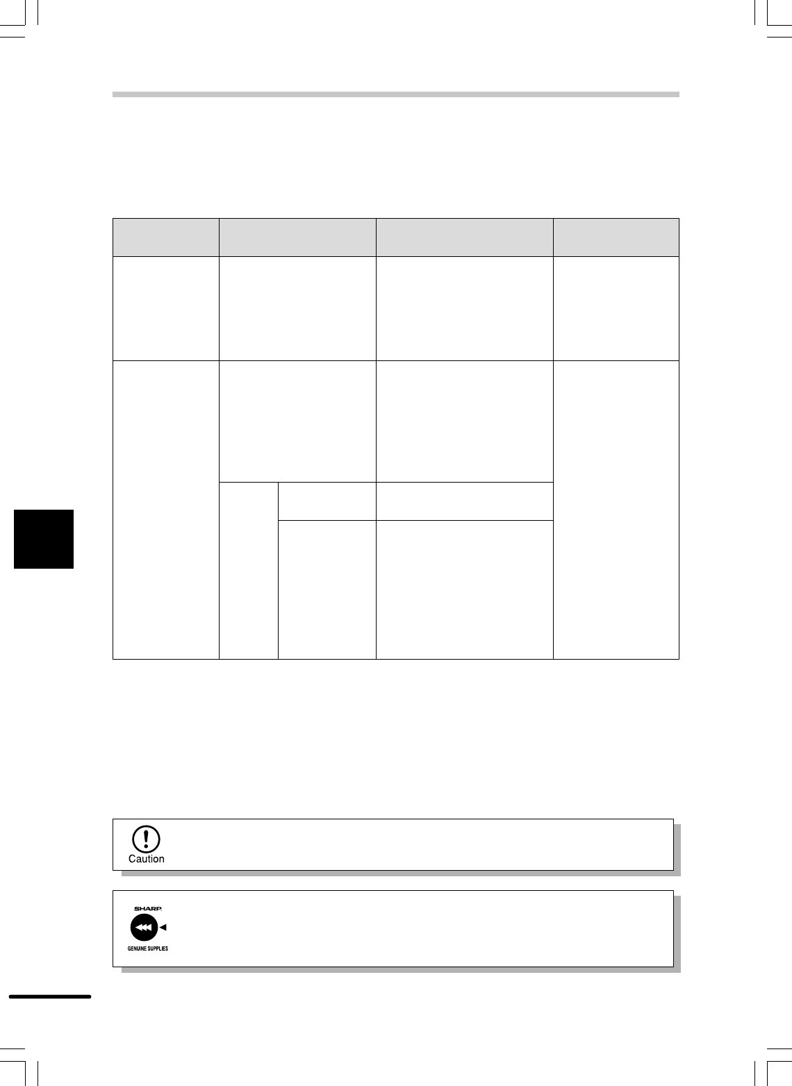 Be sure to use only genuine SHARP parts and supplies.