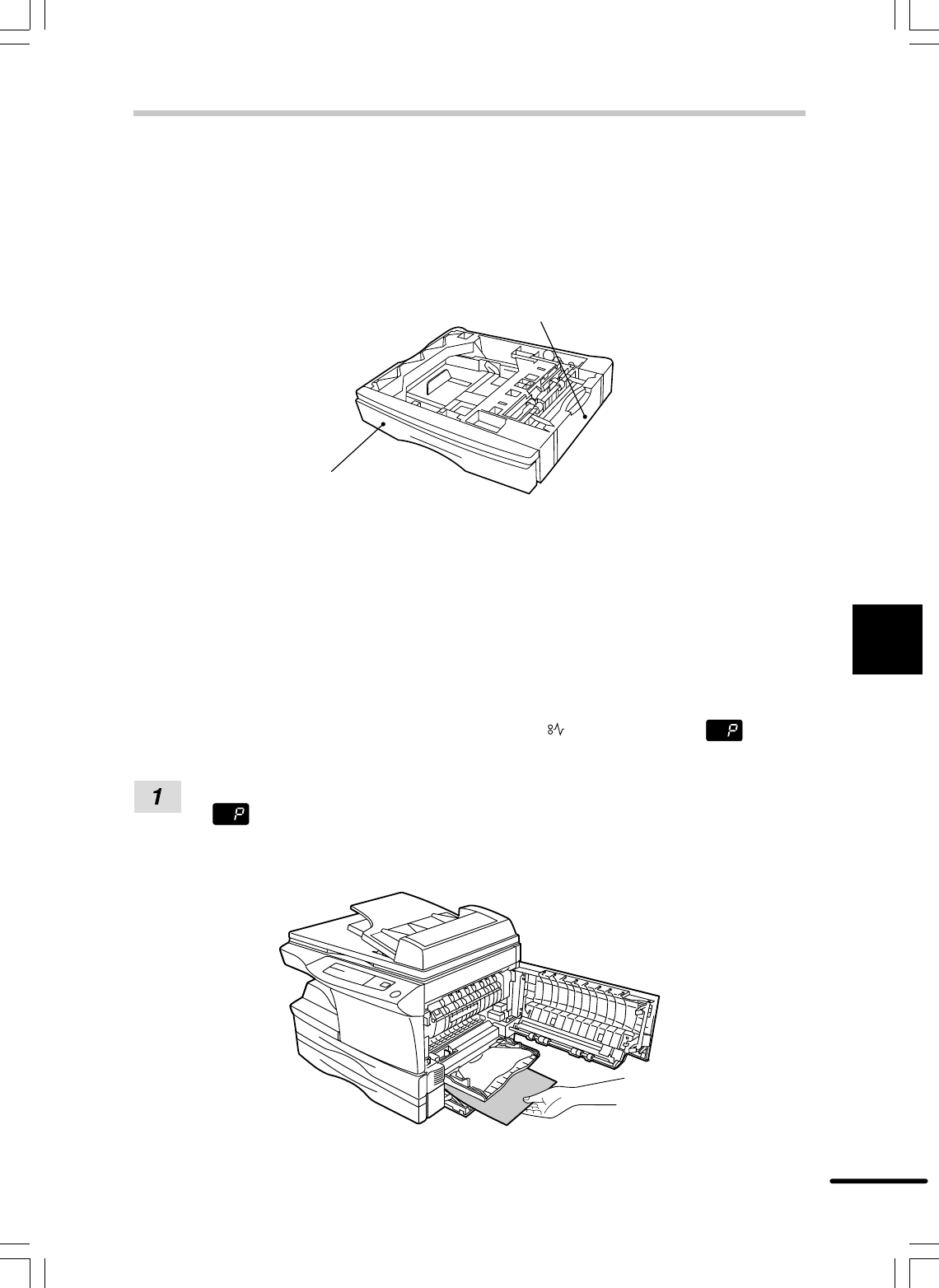 The copier will stop when a misfeed occurs. The misfeed ( ) indicator blinks or blinks in