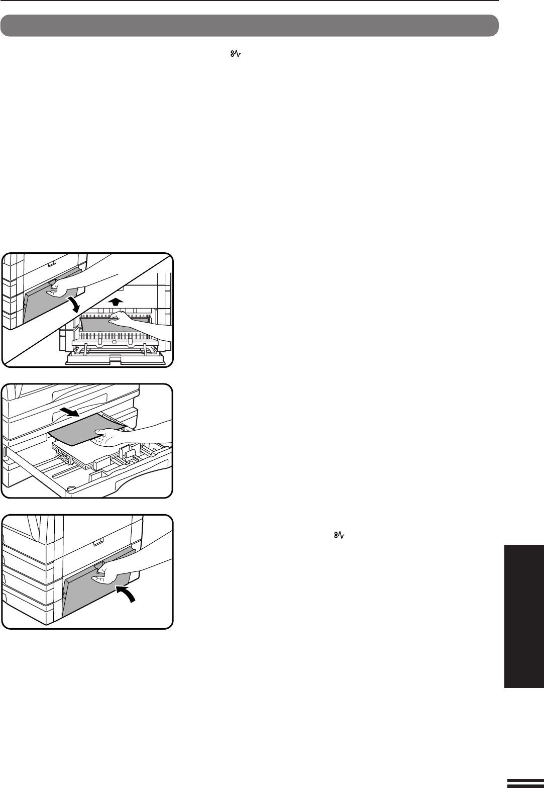 The copier will stop when a misfeed occurs. The misfeed ( ) indicator and