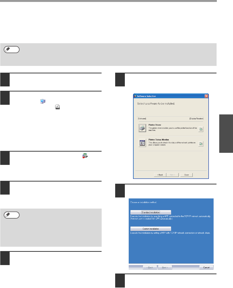 If the machine will be used as a shared printer on a network, follow these steps to install the printer