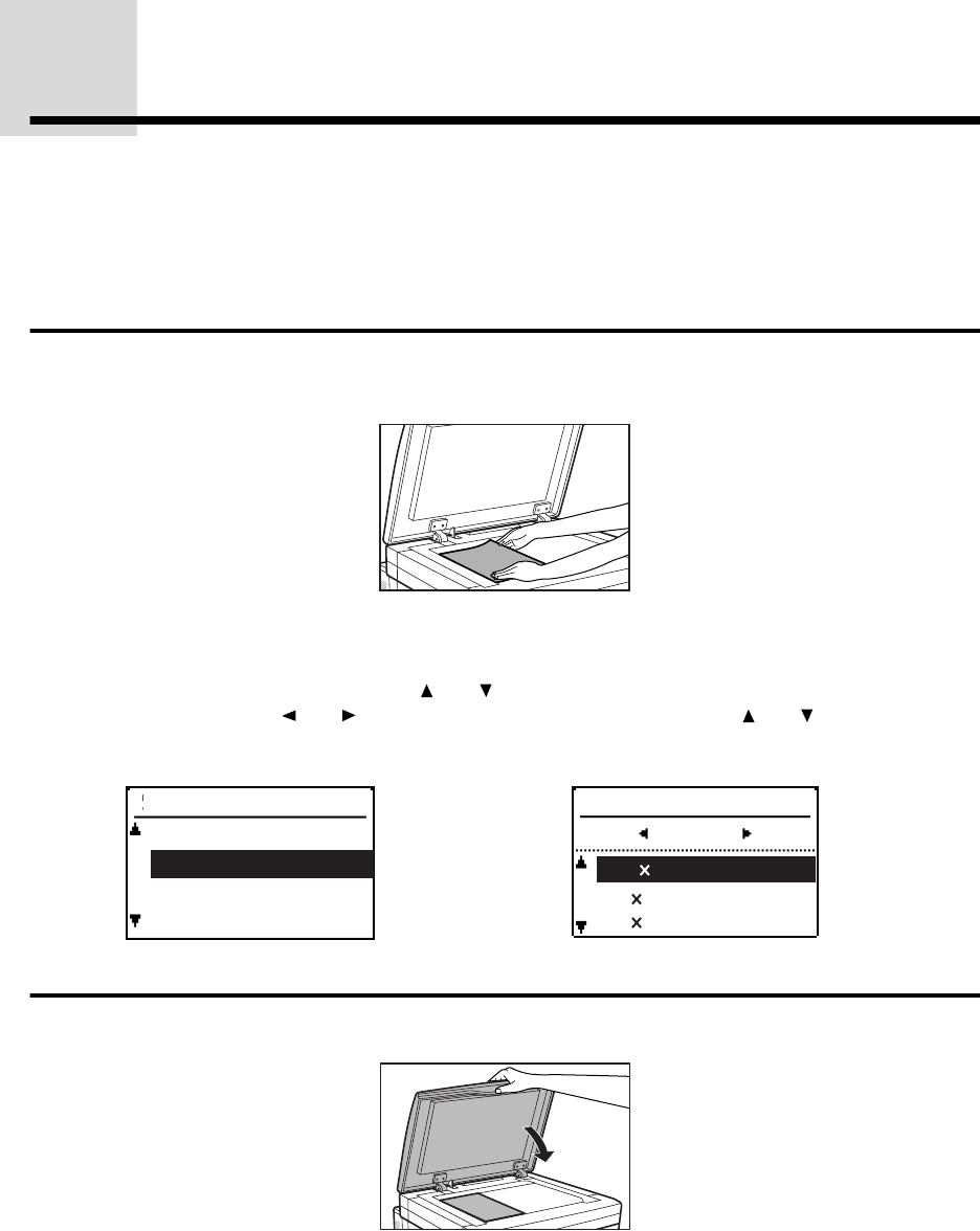 If the original size cannot be detected, the original size can be entered as follows. Press the