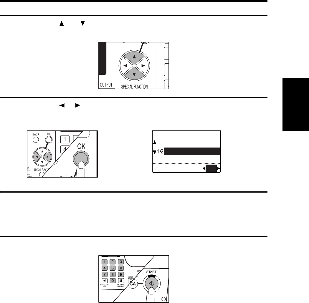 Use the and keys to select one-sided to two-sided copying.