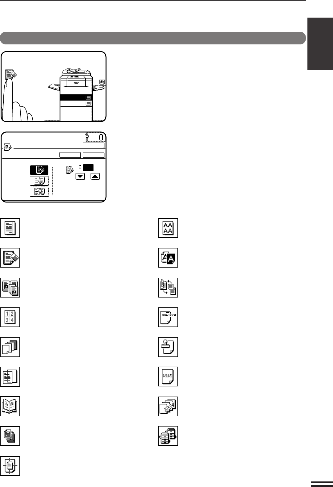 The function setting icons are listed below. The content of