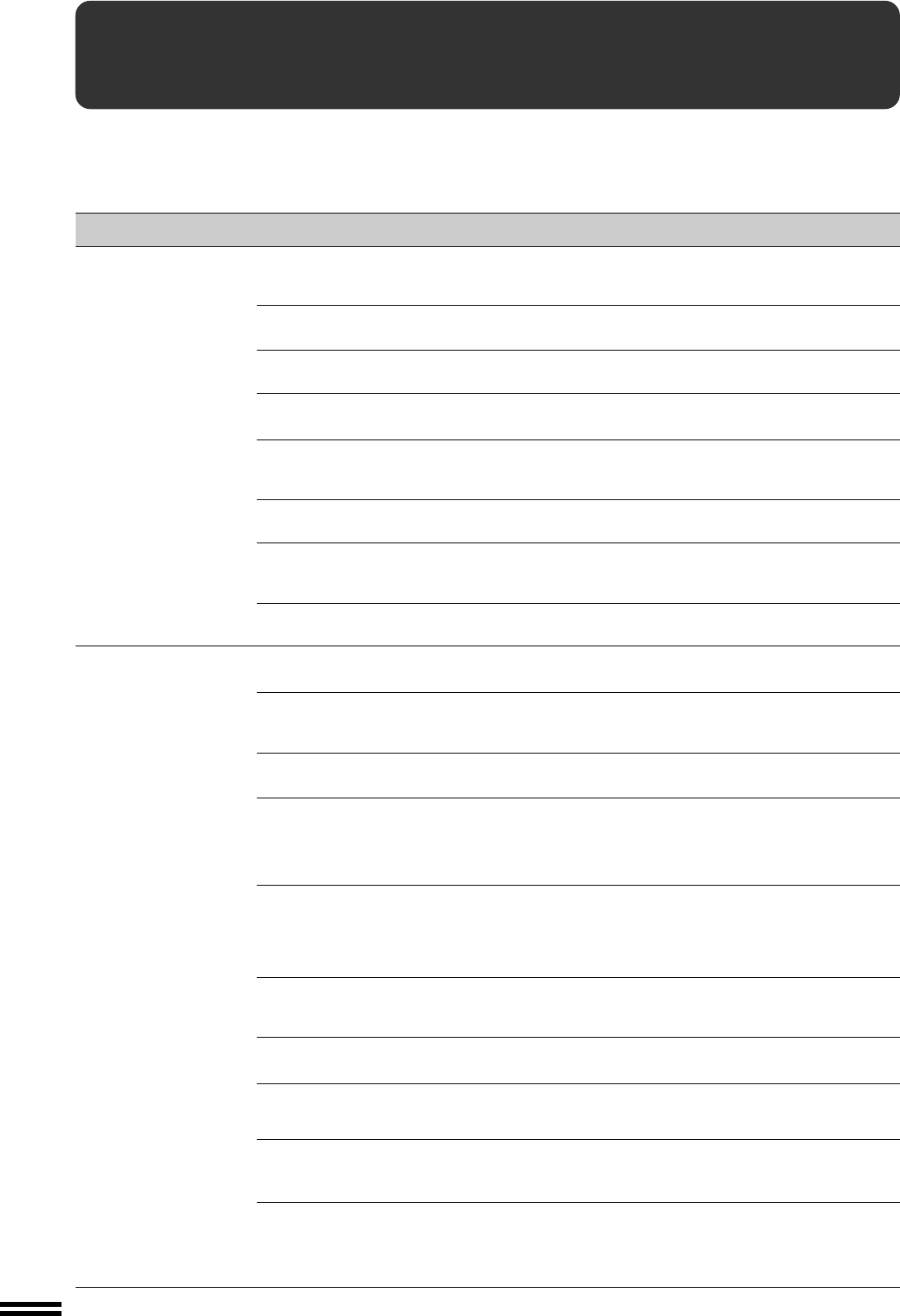 установки, установки функций по таймеру и активизирующие/отменяющие установки.