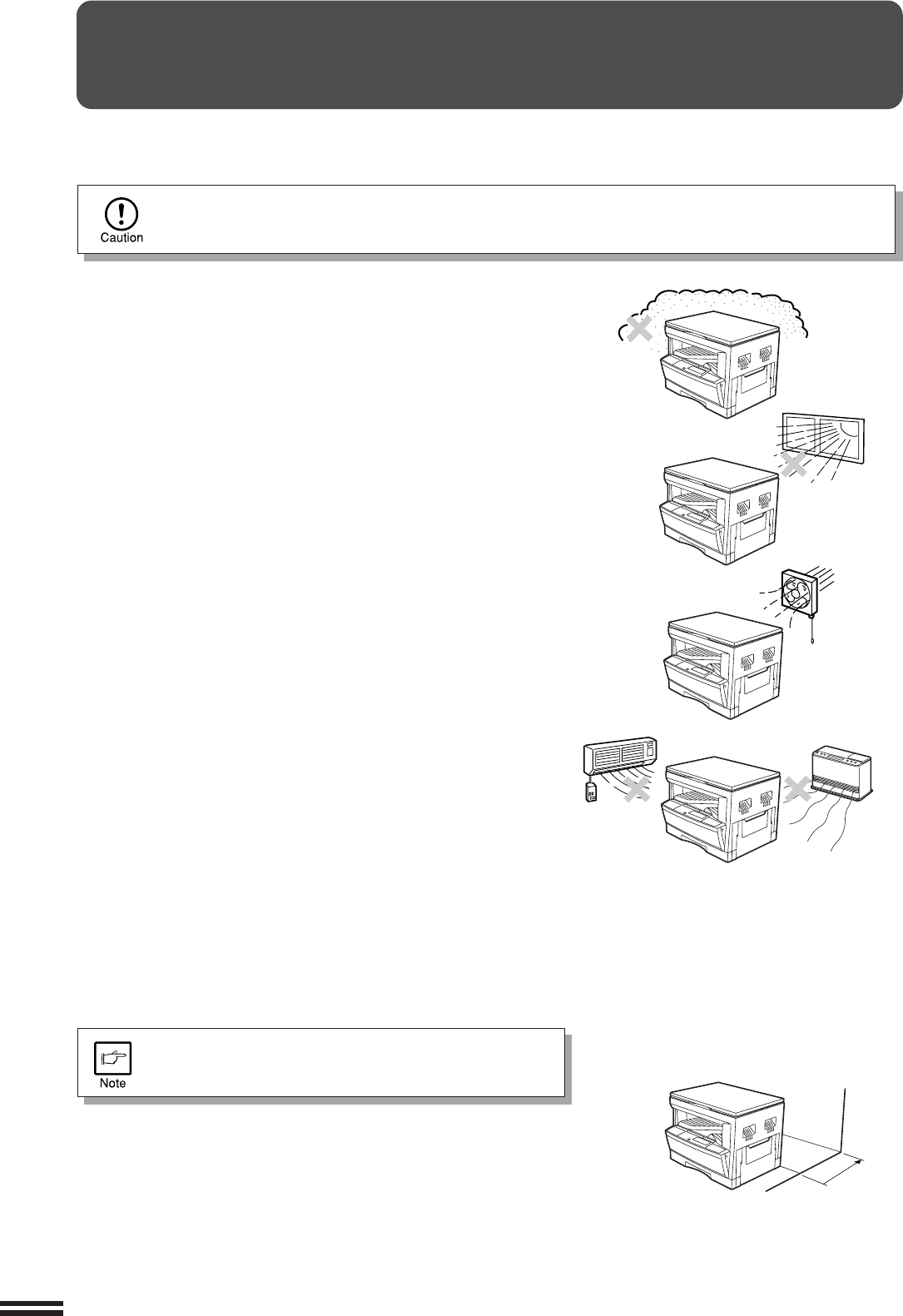 Improper installation may damage the copier. Please note the following