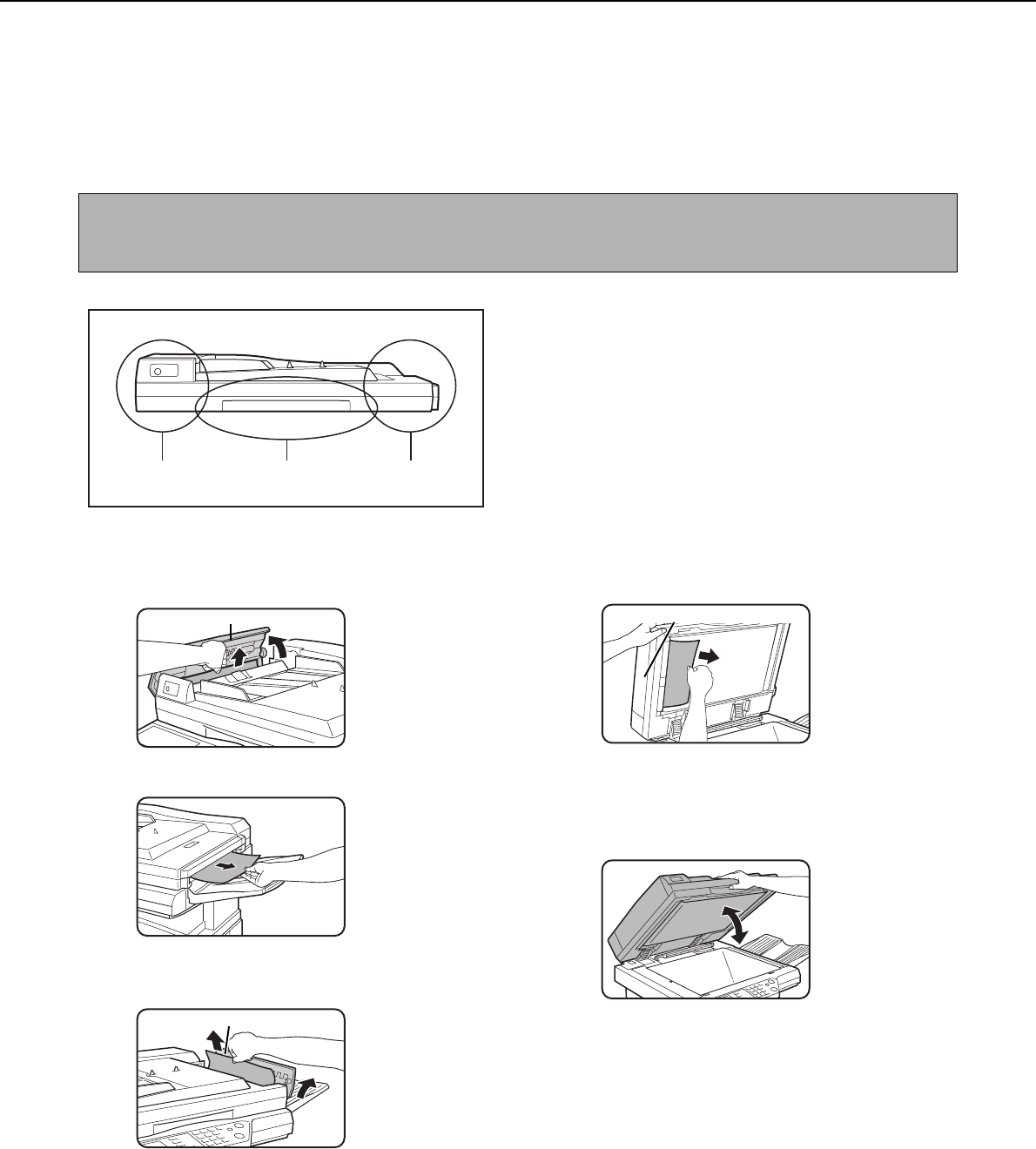 ● For misfeed removal in the main unit and other peripheral devices, see page 2-18.