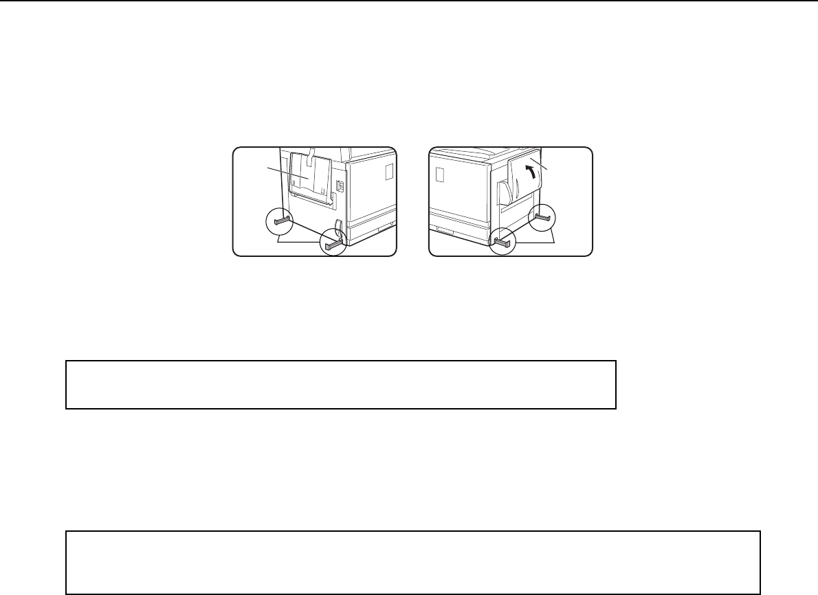 The stand/paper drawer is on casters for moving. Unlock the casters and the adjusters of the stand/paper drawer and