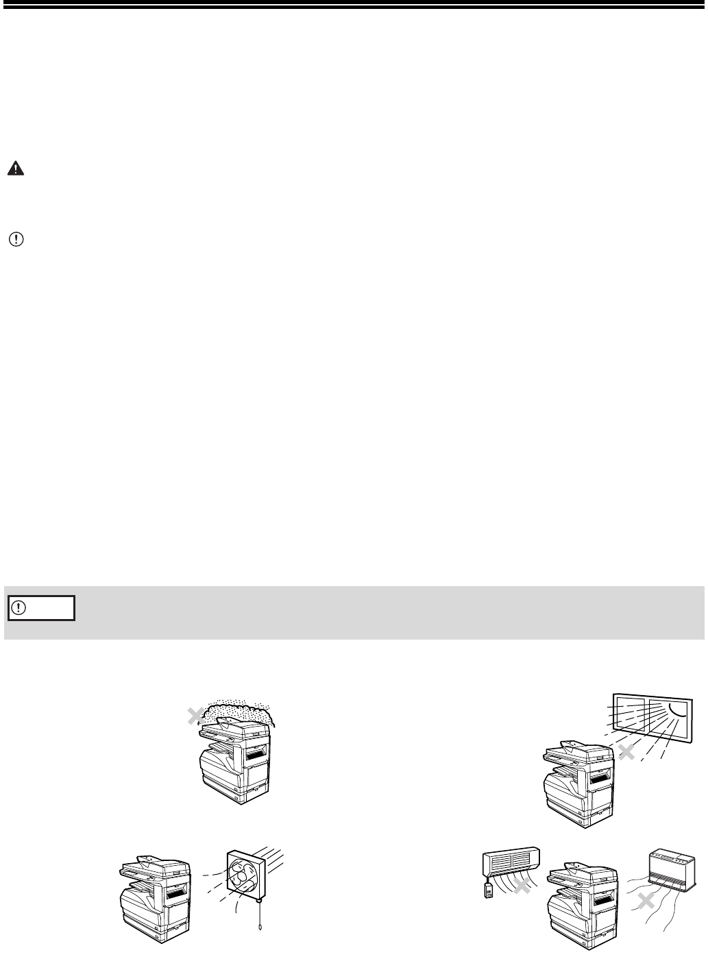 in this condition will cause poor copy quality and malfunctions. Leave the machine at room temperature for at least
