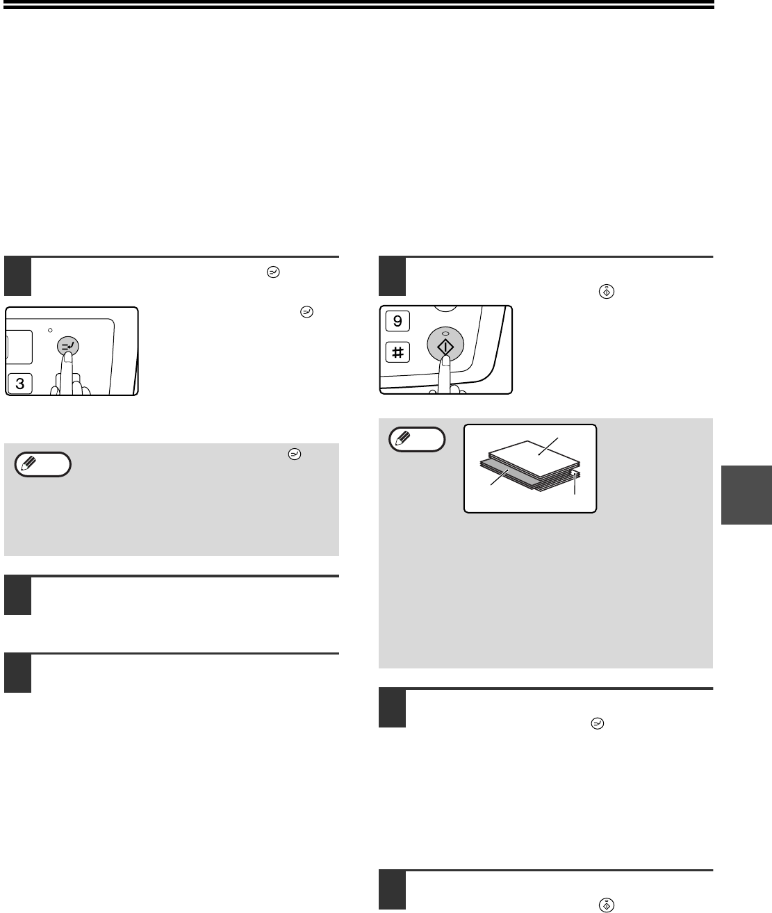 • Interrupt copying is not possible when the document glass is being used for a copy job and "NO SORT" is