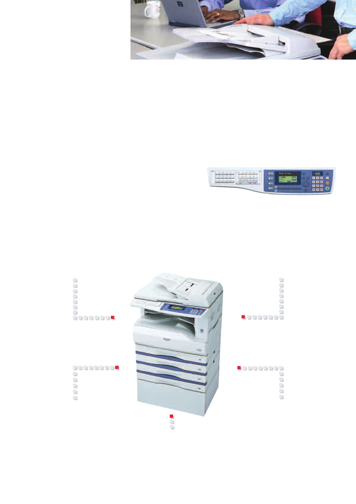 functions, delivering ultra-efficient copying/printing, brilliant colour scanning, optional Super G3 faxing, as well as convenient