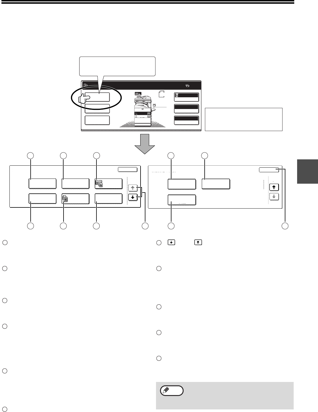 When the [SPECIAL MODES] key in the main screen of copy mode is touched, the special modes screen will