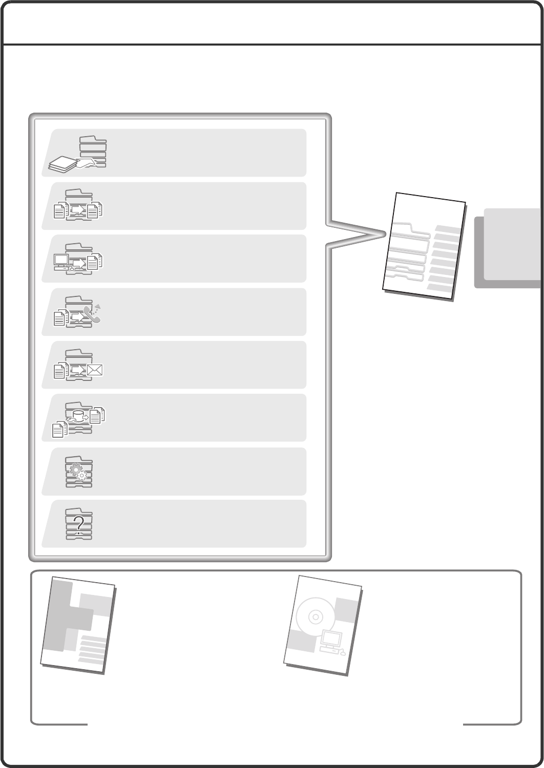 3 printed manuals and a manual in PDF format are provided with the machine.