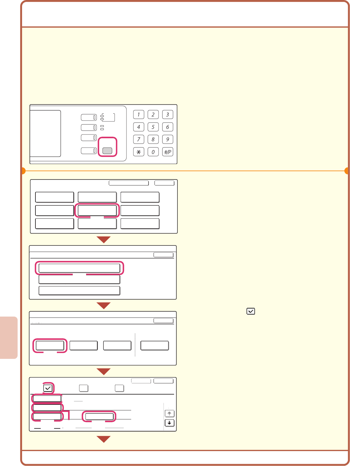 The procedure for storing e-mail addresses in one-touch keys for Scan to E-mail is explained below.